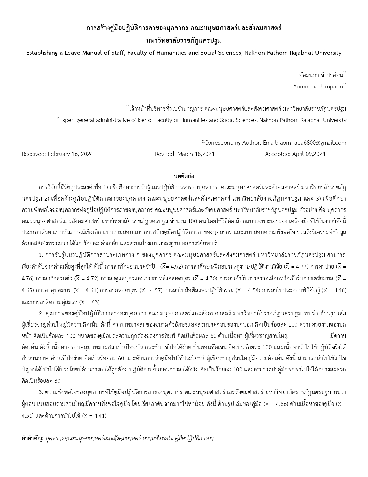 Establishing a Leave Manual of Staff, Faculty of Humanities and Social Sciences, Nakhon Pathom Rajabhat University