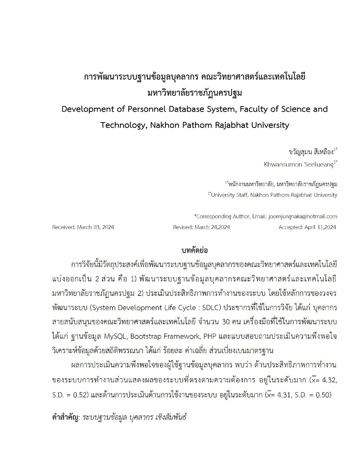 Development of Personnel Database System, Faculty of Science and Technology, Nakhon Pathom Rajabhat University