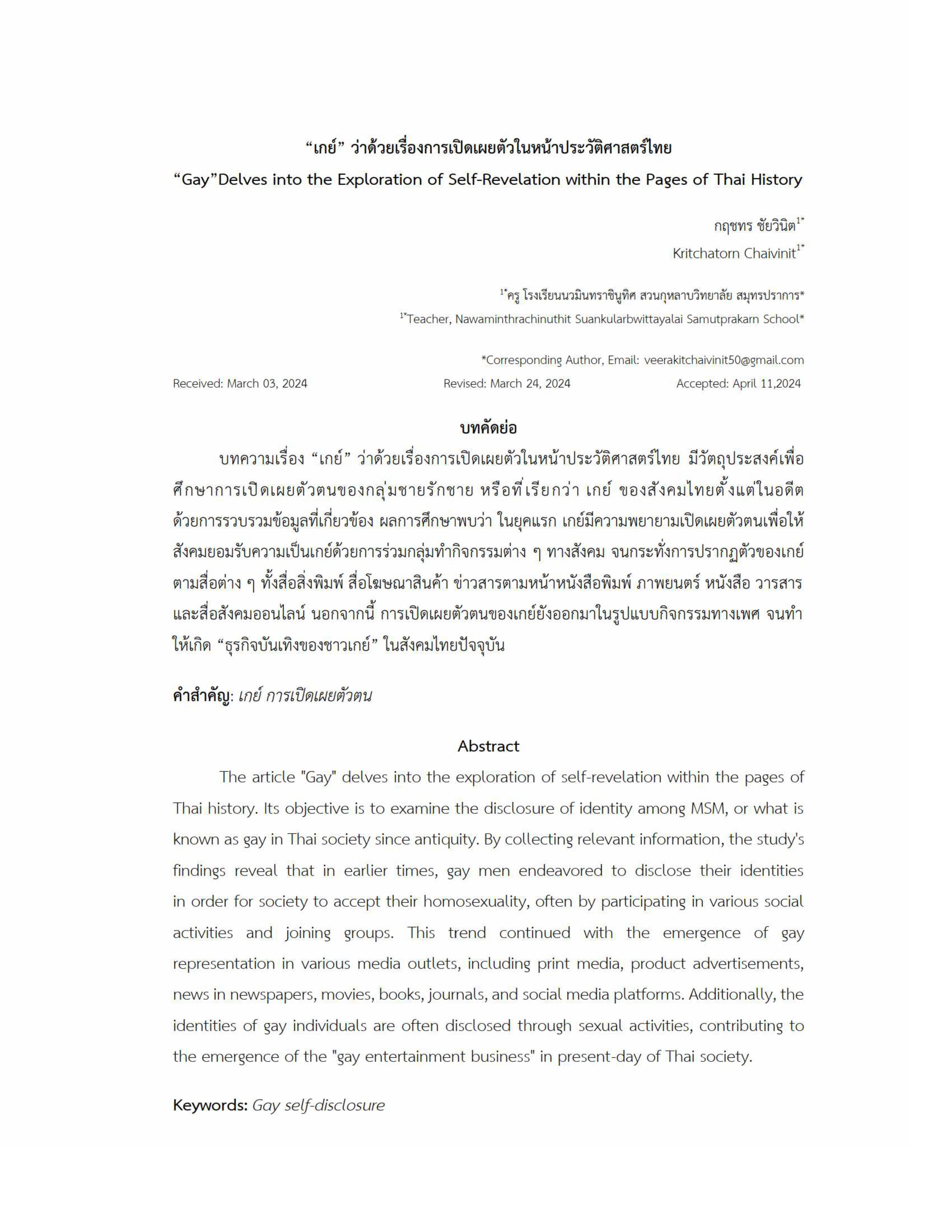 "Gay" delves into the exploration of self-revelation within the pages of Thai history.