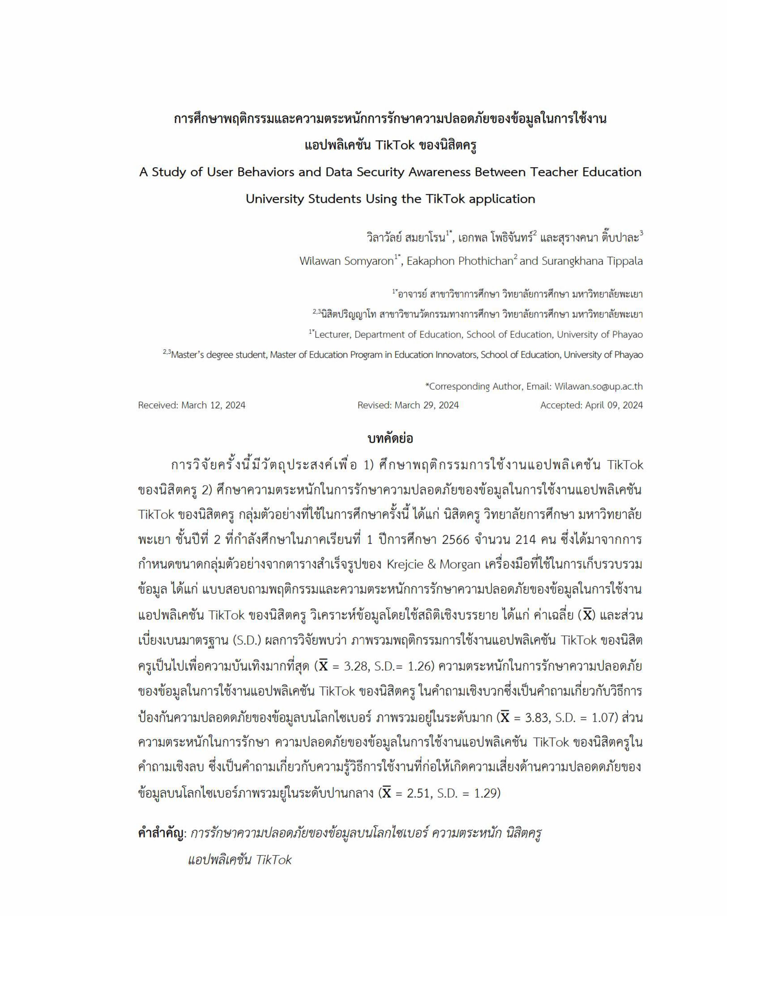 A Study of User Behaviors and Data Security Awareness between Teacher Education, University Students Using the TikTok Application